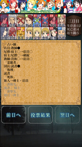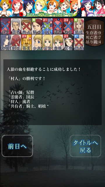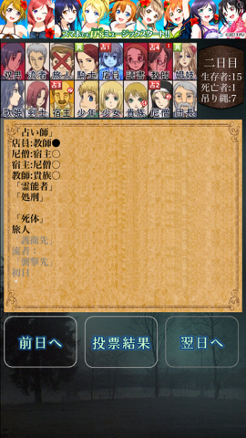 二日目のミスのお陰で三日目に妖狐に集中し、ついでに偽占い師の役職まで確定するというミラクルが発動(笑)