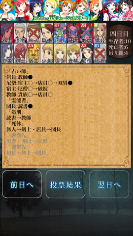 とりあえず順番に占っていこうか、と尼僧に双男を指定占いさせて占い師確定した尼僧を指定護衛するのを忘れずに四日目へ。